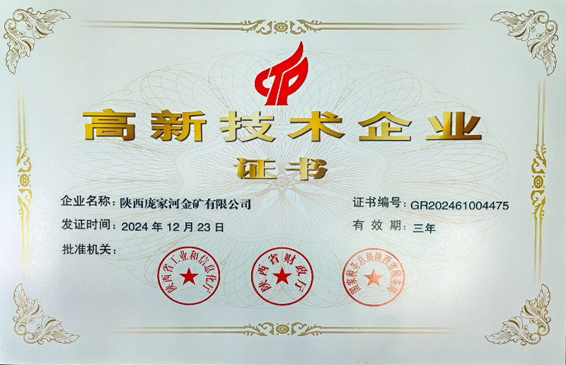 • 喜報!陜西龐家河金礦榮獲2024年度高新技術企業認證